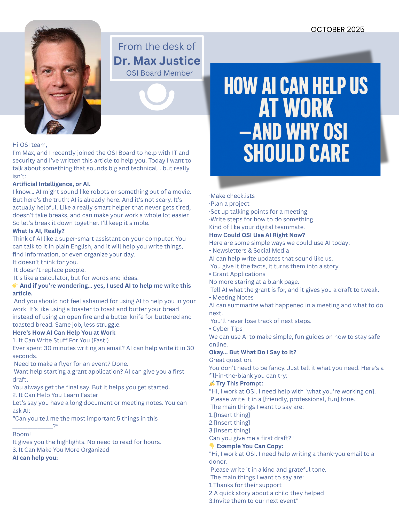 Extra! Extra! The October 2025 OSI Newsletter is here!! 📰